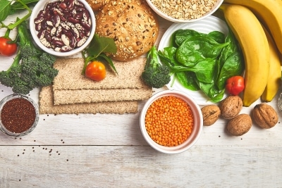 Add a portion of fruit or vegetables to every meal, choose whole grains over processed ones, and have nuts or seeds as a snack to increase your intake of high-fiber foods.